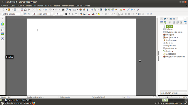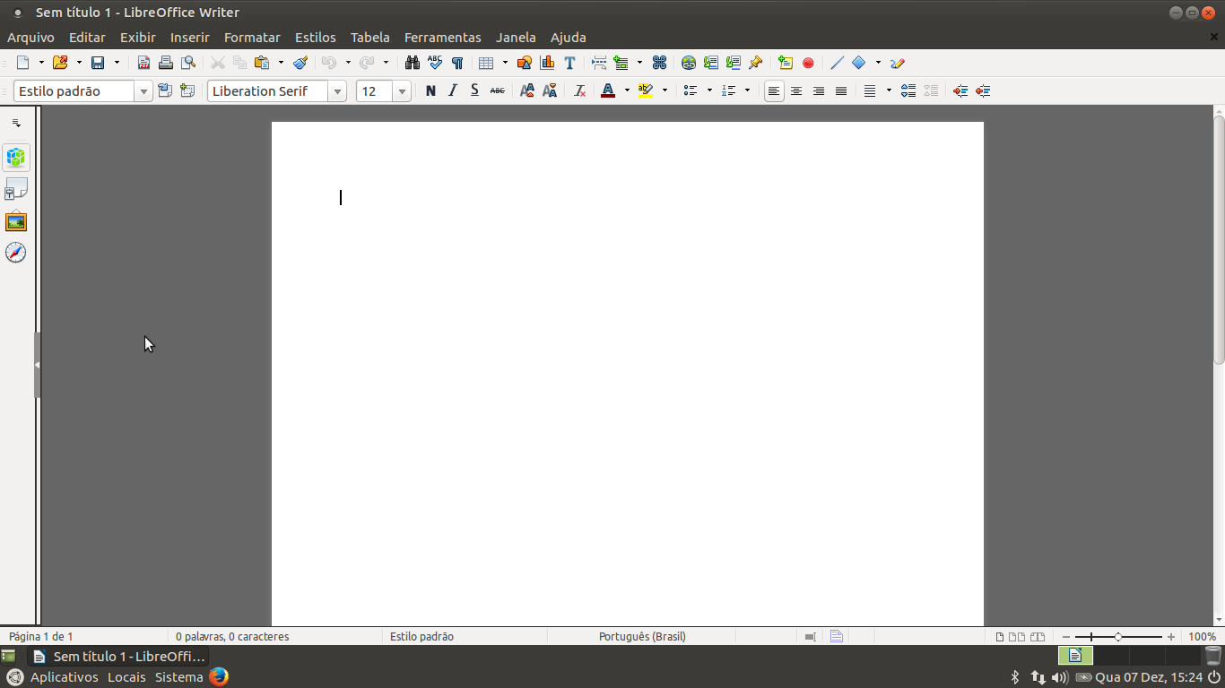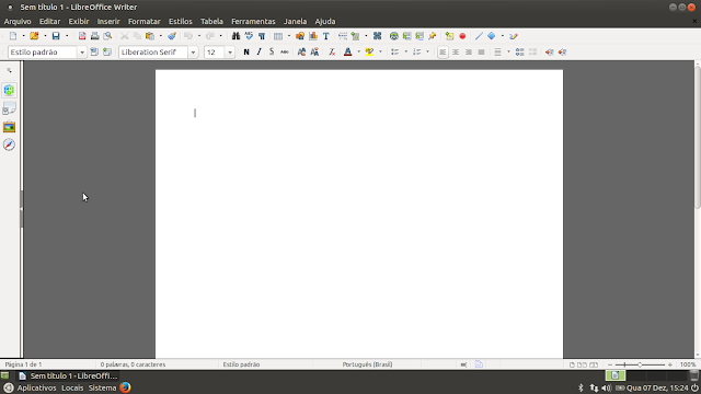 Após uma instalação, o LibreOffice Writer costuma vir assim: